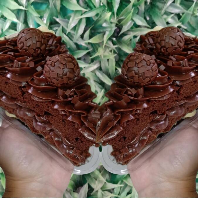Essa deliciosa fatia vem com duas camadas de bolo de chocolate bem fofinho e recheio e cobertura de brigadeiro de chocolate 50%. Peso aproximado 315g Serve 1 pessoa