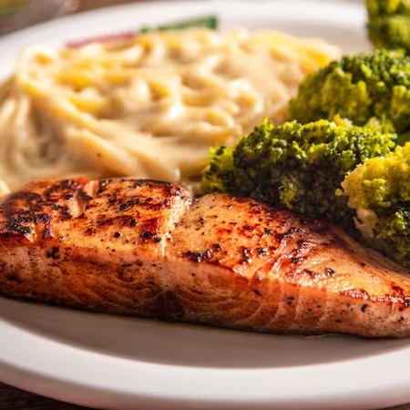 Filé de peixe salmão levemente temperado e regado ao molho de sua preferência.