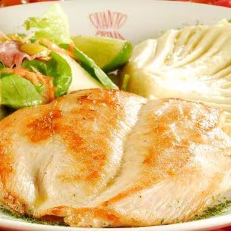 Corte de filé de frango grelhado, regado ao molho de sua preferência.