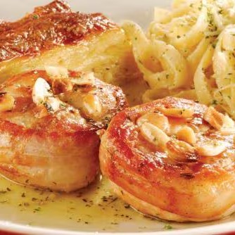 Filé de camarão puxado na manteiga e coberto com nosso clássico molho de queijos. Dois acompanhamentos a sua escolha.