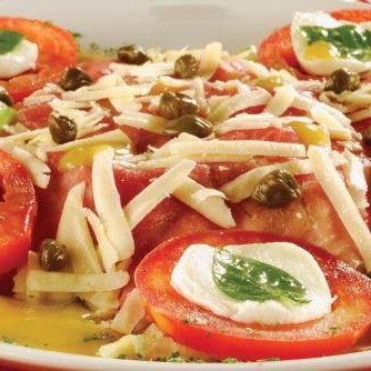 Alface americana, carpaccio, parmesão ralado, alcaparras, tomate fresco, mussarela de búfala e manjericão. Regada ao molho de mostarda tipo carpaccio.