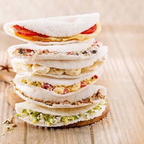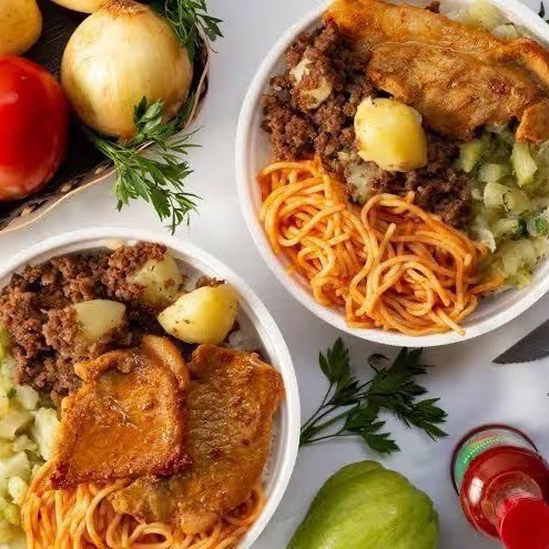 Pão bola, carne bovina, frango desfiado, queijo mussarela, tomate, cebola, alface, patatá palha, milho e ervilha