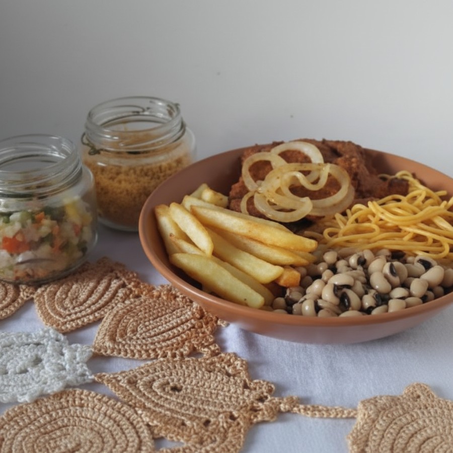 Acompanha arroz branco, batata frita e feijão à escolha.