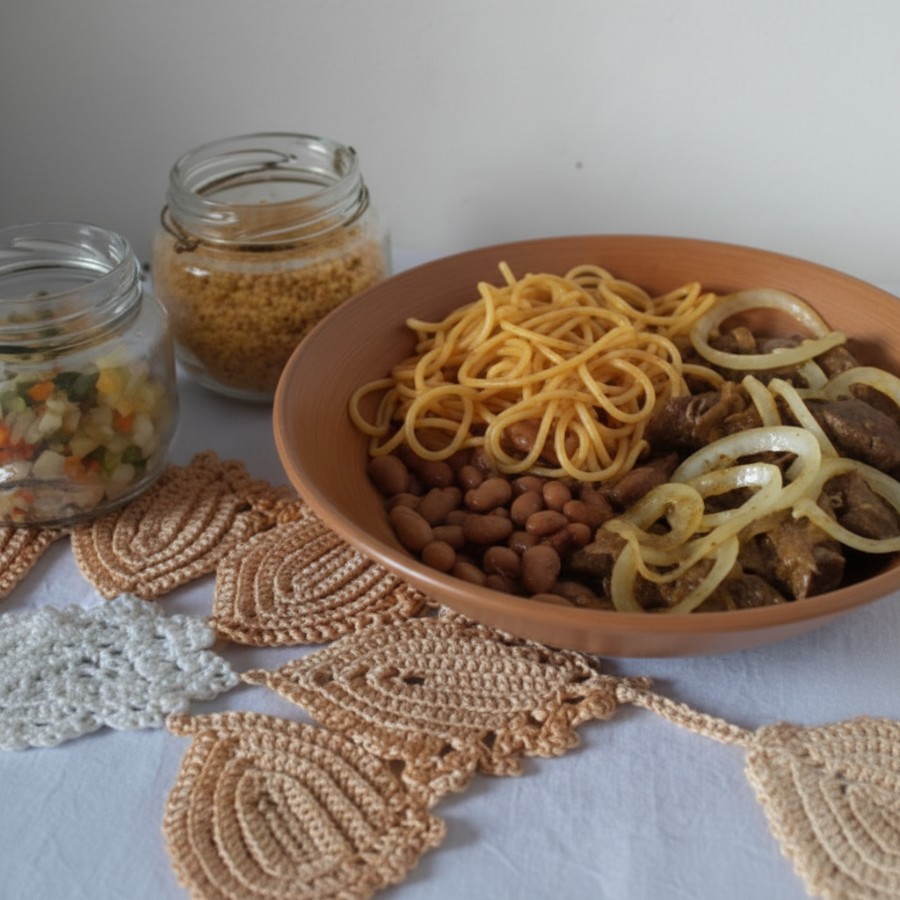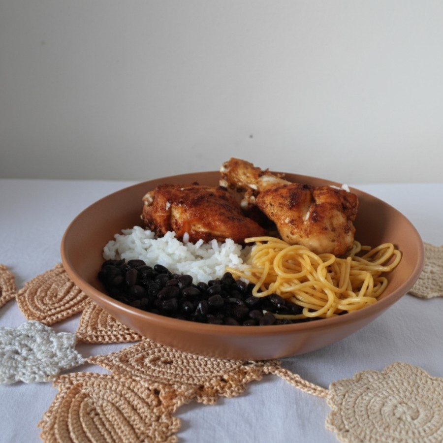 Acompanha macarrão, feijão à escolha, vinagrete e farofa.