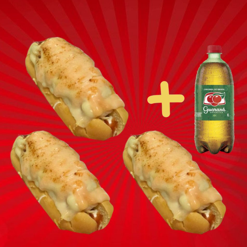 3 Hot Dog 15cm, Calabresa Com Fritas, Cheddar