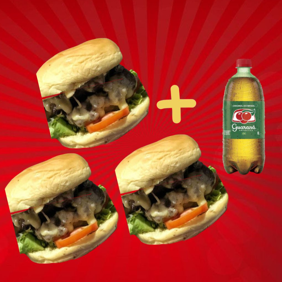 Três X-quero Burguer + Antárctica 1 Litro