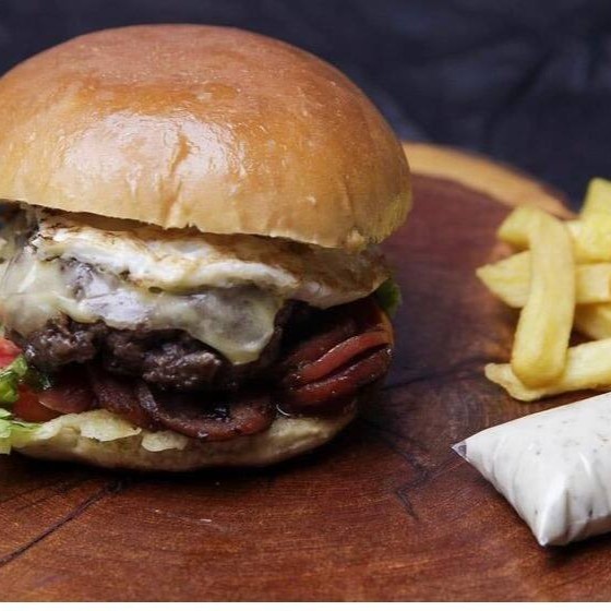 Pão amanteigado, hambúrguer 120g, cebola na chapa, salada, molho especial, queijo mussarela e ovo.