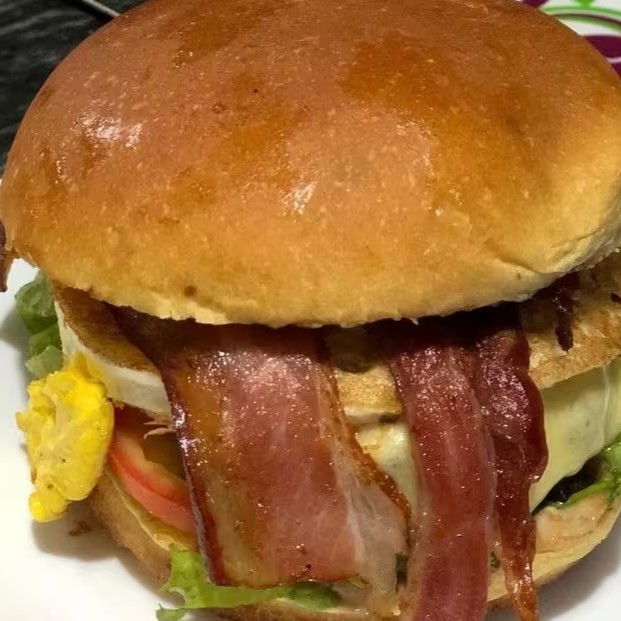 Pão Amanteigado,Carne 130g, Alface, Tomate, Cebola Na Chapa, Muçarela, Barbecue, Molho Especial, Cheddar E Bacon