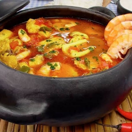 Caldeirada frutos fo mar com camarão , lula , arraia , sururu, marisco , polvo , milho ervilha , bem temperada uma delicia