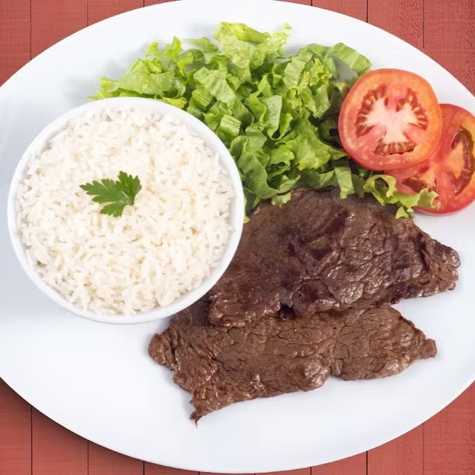 Acompanha arroz, feijão, vinagrete e farofa.