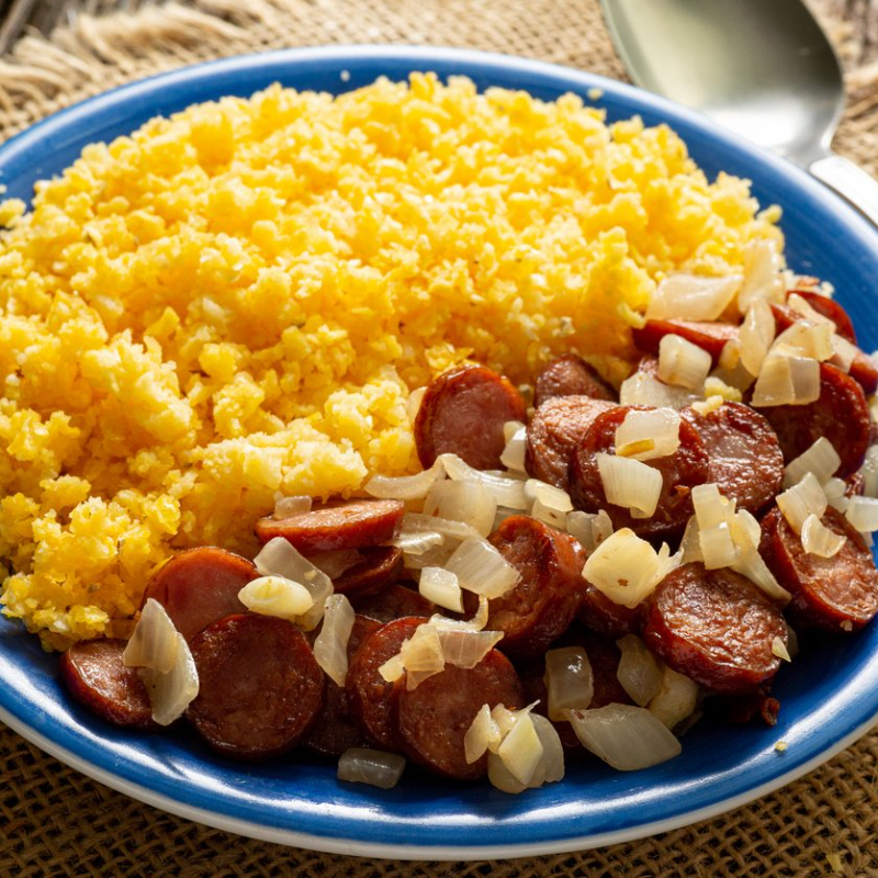 Cuscuz na manteiga com calabresa