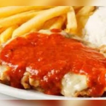 Filé De Carne A Parmegiana 2 Bifões Bem Grande Com Queijo + Batata Frita