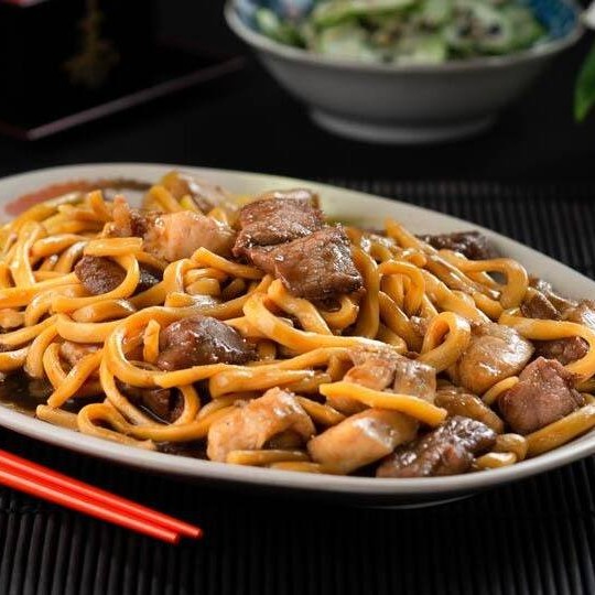 Nosso delicioso Yakissoba acompanha, Carne, Frango, Macarrão com