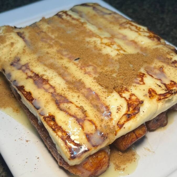 Banana , queijo manteiga, açúcar e canela