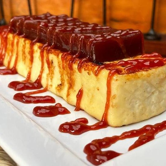 Acompanha uma fatia de queijo coalho