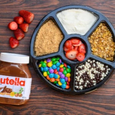 Leite em pó, granola, 2 fruta , leite condensado , bolinha de cereal ,Confete, jujuba e calda *Obs: Se não quiser granola pode substituir por amendoim, paçoca ou farinha lactea. Informar na observação! Se não, vai conforme esta descrito acima