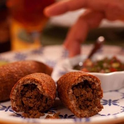 Croquete de carne bovina e triguilho, recheado com carne soltinha e mais de um século de receita.