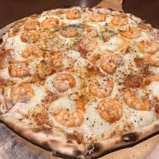 Massa artesanal coberta com molho de tomate, recheada com queijo mussarela camarão, Catupiry e finalizada com orégano e azeitona.