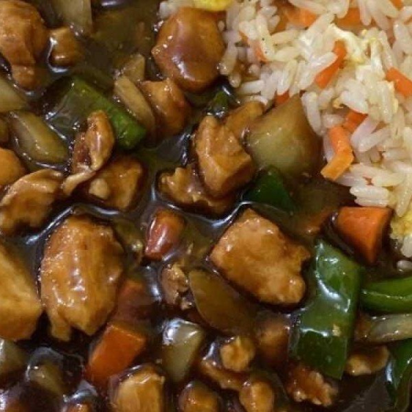 Frango, cenoura, cebola, pimentão (opcional) ao molho shoyu