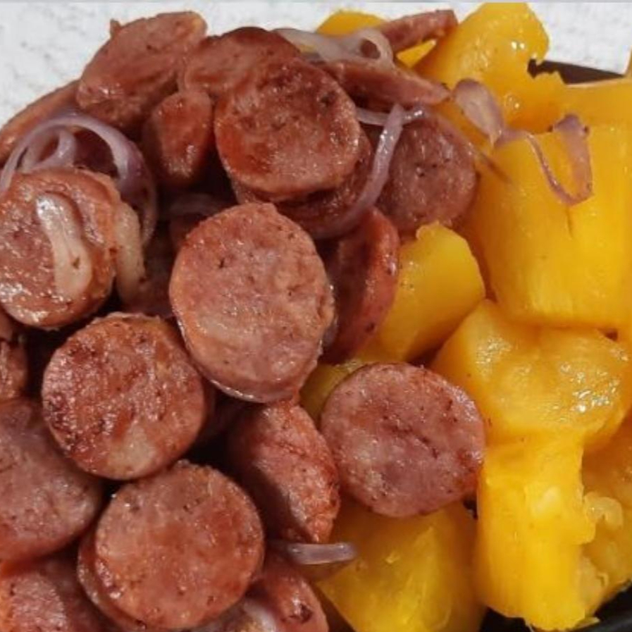 Acompanha: feijão mulato ,arroz ,macarrão ,purê ,vinagrete e farofa