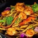 Yakisoba Premium com Camarão do Chef Frango suculento, bacon, camarões selecionados, legumes frescos e macarrão oriental frito no óleo de gergelim. Tudo salteado na wok com alho, gengibre e o nosso molho especial da casa. Um yakisoba intenso, aromático e cheio de textura — perfeito para quem busca sabor oriental de verdade. Observação: Foto ilustrativa. Seu pedido é preparado na hora e enviado em embalagem térmica, preservando sabor e temperatura até você.
