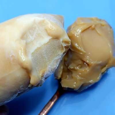 Sacolé cremoso com sabor marcante de doce de leite.