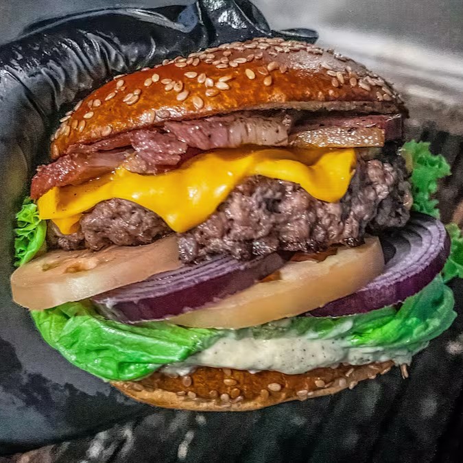 Aprecie o inconfundível 'Jonny's Bacon Burger que acompanha: Pão de brioche selado na chapaBurguer artesanal de 130gFatias de cheddar derretidoFatias de bacon crocanteAlface, tomate em rodelas e cebola roxa fatiada. Maionese Verde da Casa