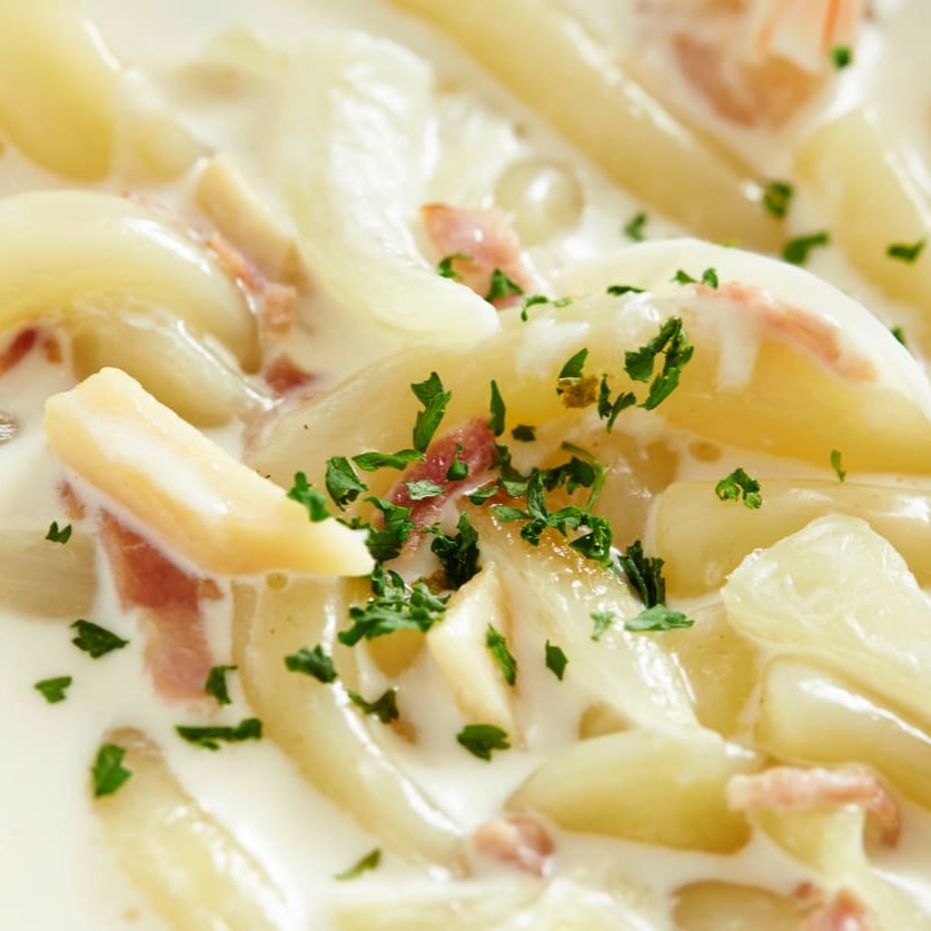 Spaghetti Ao Molho Branco, Cubos De Frango E Bacon