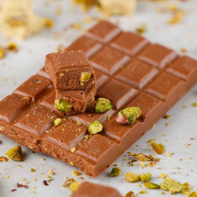 Uma combinação irresistível de chocolate suave e crocante de pistache.