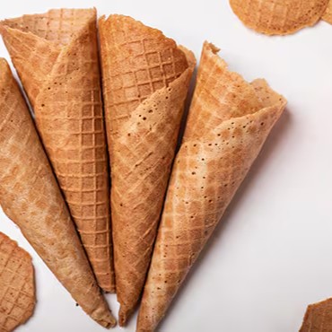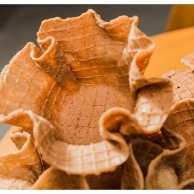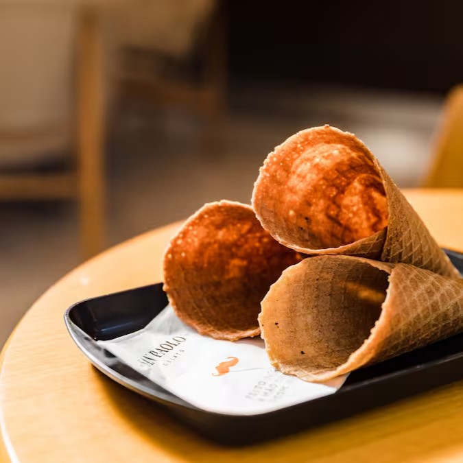 4 cones produzidos na hora de maneira artesanal. Receita exclusiva, ótima para servir com gelato.