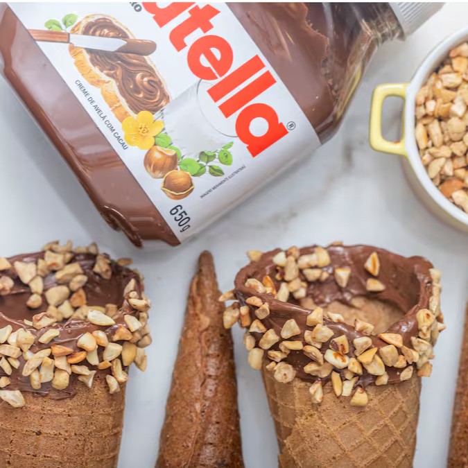 Prepare o seu cone recheado em casa com Nutella e castanha!