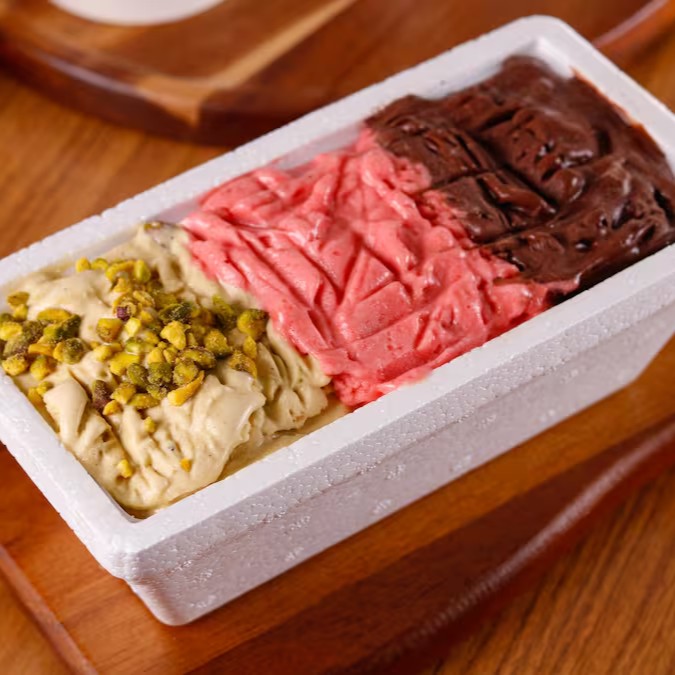 Delicadeza e intensidade em cada colherada. Uma combinação cremosa de gelato de pistache, Fior di Latte e crumble artesanal, finalizada com uma generosa camada de creme de pistache e pistaches crocantes. Uma experiência feita para surpreender — assim como o amor de mãe.