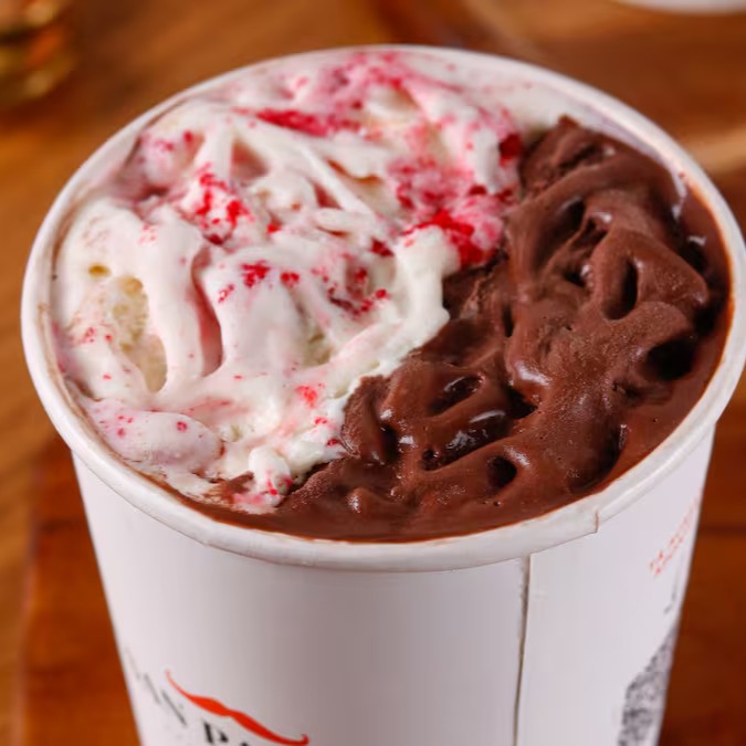 Seu gelato favorito com uma camada crocante que você pode escolher: chocolate e castanha, bolo vermelho com chocolate branco ou chocolate branco e biscoito.