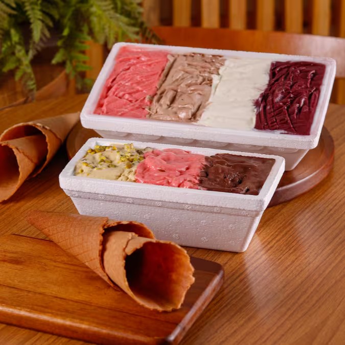 1100g de gelato (Até 4 sabores) + 550g de sabor surpresa + 4 cones artesanais
