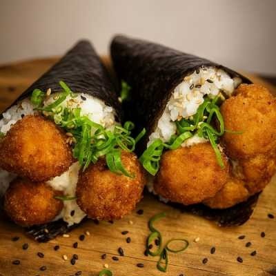 Deliciosos temakis de kani crocante, recheados com ingredientes frescos e saborosos. Uma combinação irresistível para os amantes de sushi.
