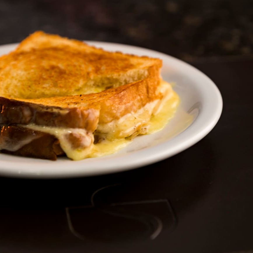 Queijo coalho, manteiga ou mussarela derretido em pão de forma ou francês, finalizado com manteiga na chapa.