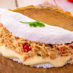 Recheio cremoso de frango com requeijão e queijo coalho em massa fina de tapioca.