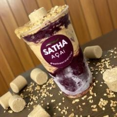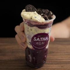 Açaí Premium com camadas de leite condensado e mousse de maracujá