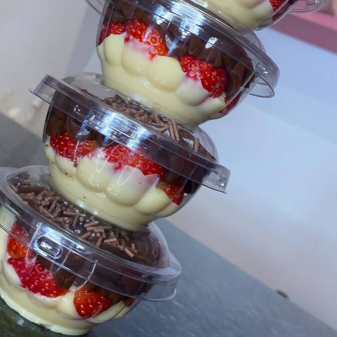 Morangos, chantilly, Brigadeiro Gourmet, Brownie, Mousse de Ninho e Brigadeiro Branco