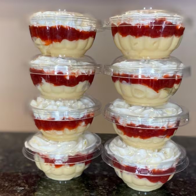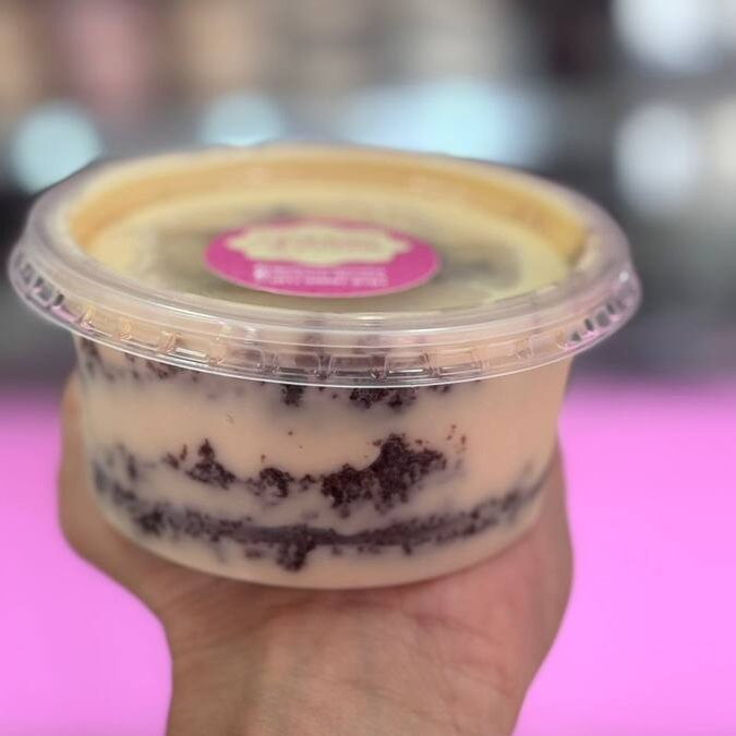 Bolo de Baunilha com camadas de recheio de Ninho. Pote de 200ml de pura delicia.