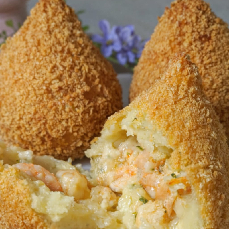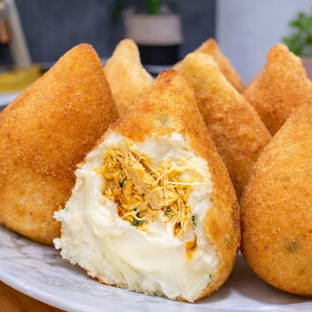 Deliciosa porção de coxinhas tamanho festa, porção contendo 10 und.