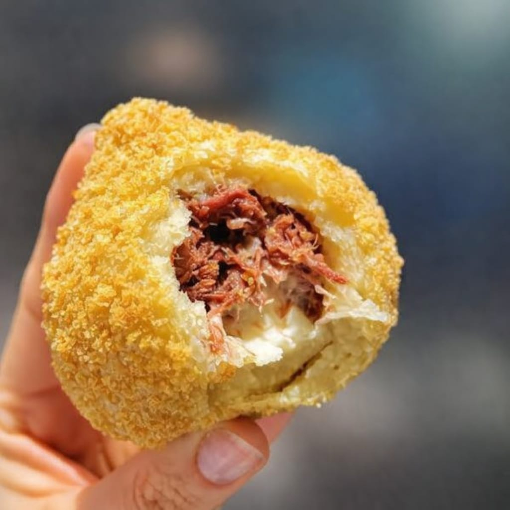 Deliciosa coxinha com uma massa crocante e um recheio excepcional de charque. Peso final Aprox 150g
