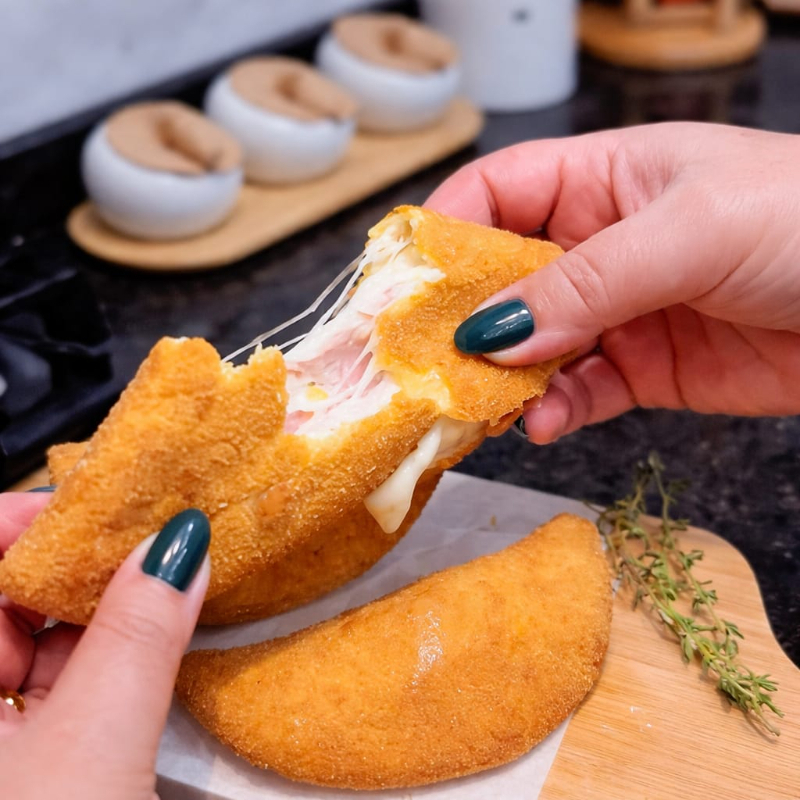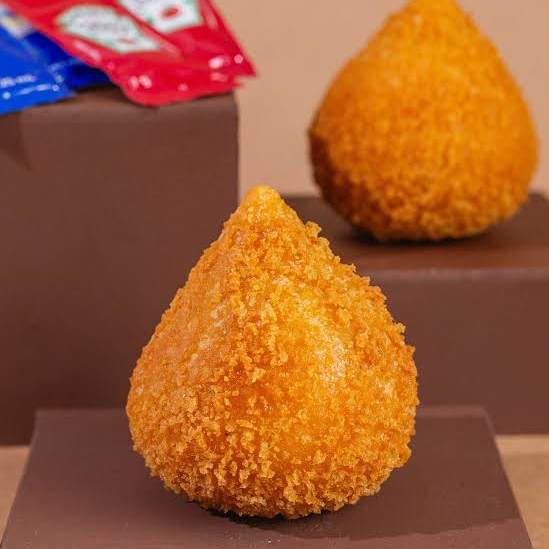 Deliciosa coxinha com uma massa crocante e um recheio excepcional de frango com requeijão .Peso final Aprox 150g