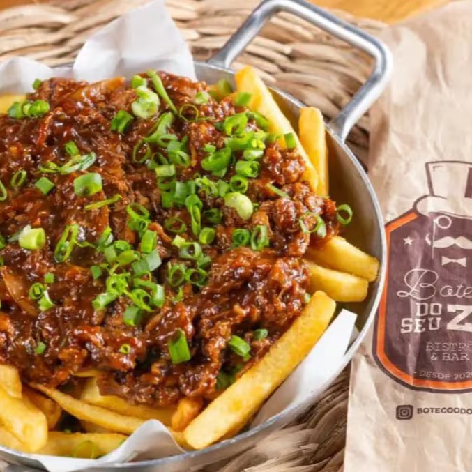Batata fritas crocantes com costela desfiada, acompanhadas de deliciosa maionese da casa.