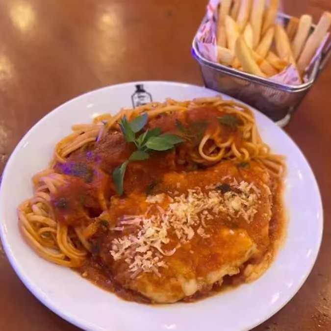 Acompanha espaguete, fritas ou purê de macaxeira. Uma opção clássica e reconfortante, perfeita para qualquer ocasião.