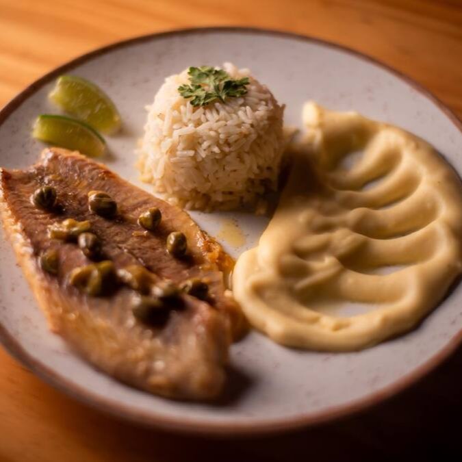 Filé De Tilápia Com Alcaparras + Arroz C Brócolis - Purê De Batatas