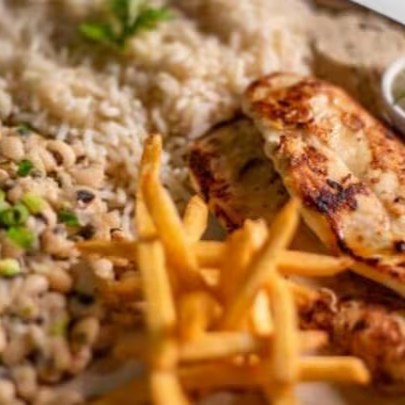 Suculento filé de frango grelhado ao ponto perfeito, acompanhado de arroz soltinho, feijão-fradinho com tempero especial da casa e batatas fritas crocantes. Finalizado com vinagrete artesanal e farofa crocante.