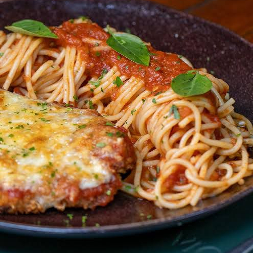 O Melhor Frango Parmegiana Da Sua Vida! + Macarrão Ao Sugo ( Serve 1 Pessoa)