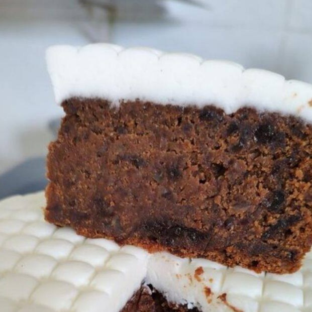 Bolo de Noiva tradicional, preparado com frutas cristalizadas, passas, ameixas e vinho, seguindo receita artesanal. Massa úmida, sabor marcante e cobertura especial. Ideal para matar a saudade do sabor clássico pernambucano.
