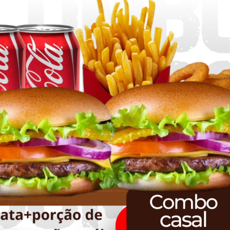 1 x-burguer, 1 porção de aneis de cebola, 1 porção de batata frita, coca em lata